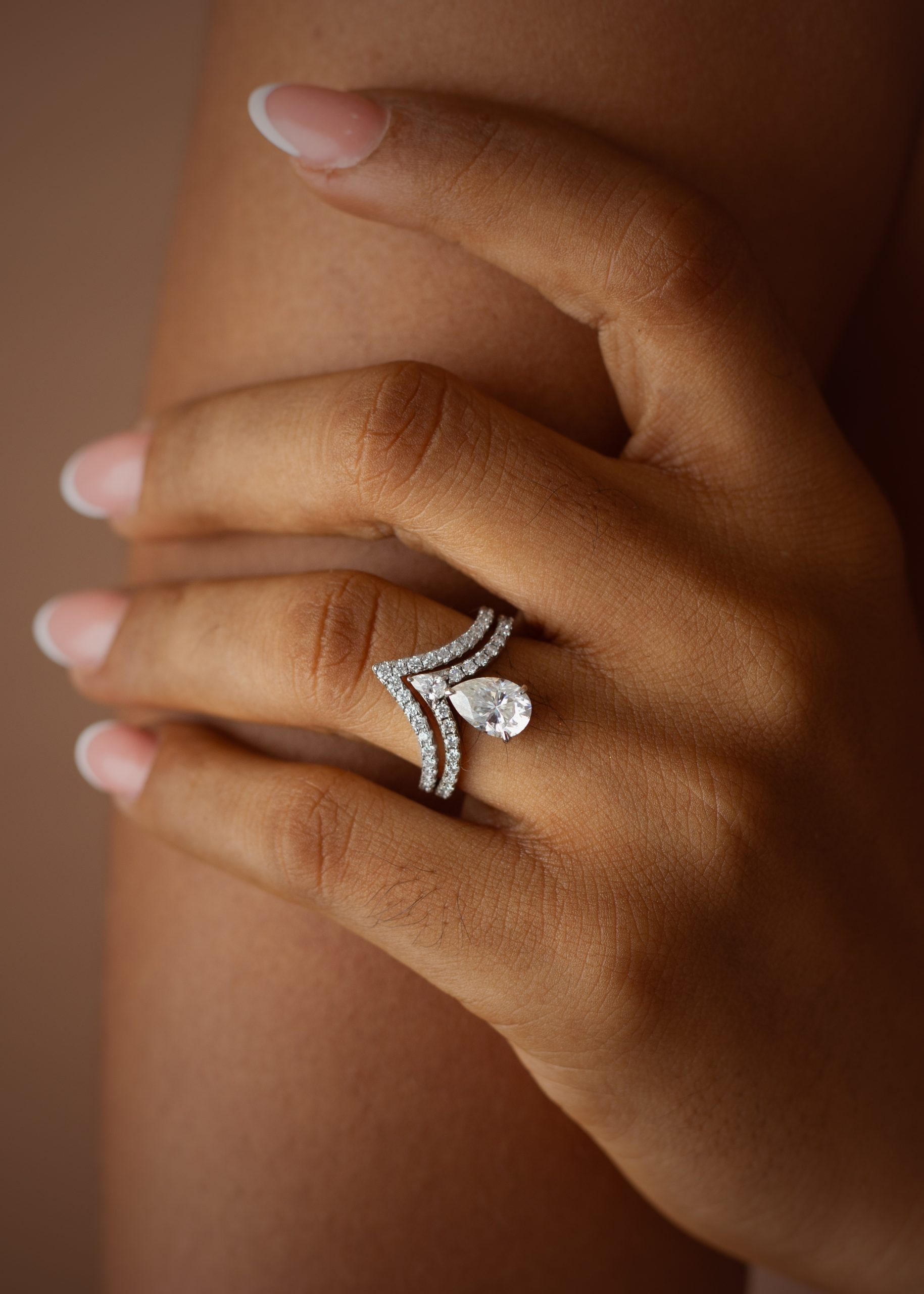 2CT Reverse Pear Cut VVS MOISSANITE Bridal Set