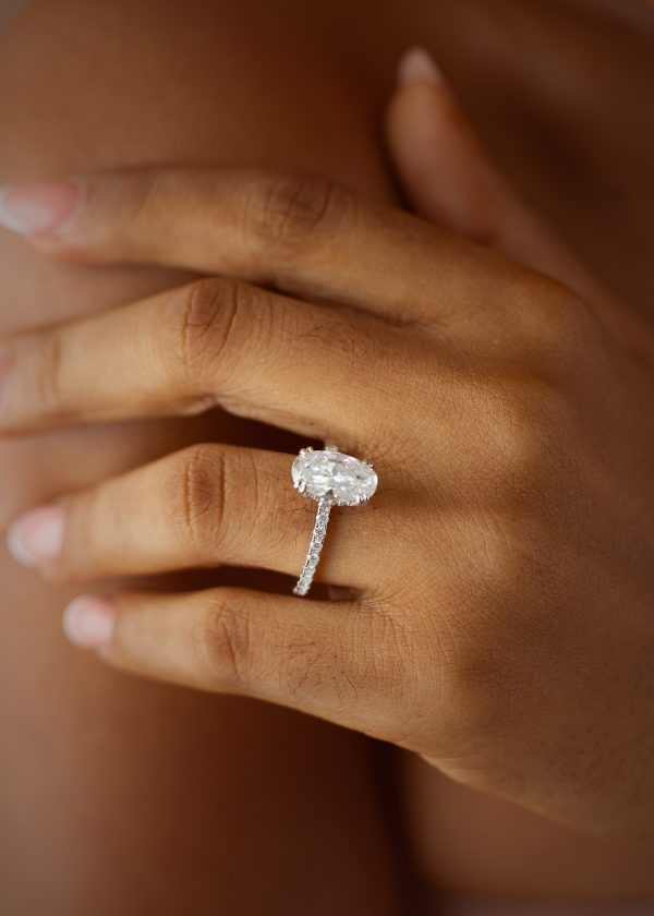 2CT Oval Cut with Hidden Halo VVS MOISSANITE Engagement Ring